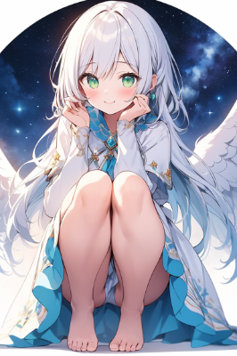 “Draw a beautiful idol gently smiling as she sits in a café chair, about to drink a café latte with a heart design. She is wearing a long-sleeved mini dress, with lustrous, fluffy long pale white hair. Her large eyes are a soft, light green color. Show her entire body from the front. The illustration should use thin lines with vivid, delie details for both the character and the background. The background should depict a café.”,mini ,longhair,green eyes,colorful,day,blue sky,cafe