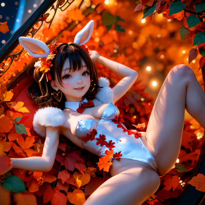 1girl, (cute loli child, furry Bunny Suit,rabbit fur tail, bunny ears band), long bob, heart-shaped_lock, well-fleshed shiny skin, sparkling dark eyes, shield earrings