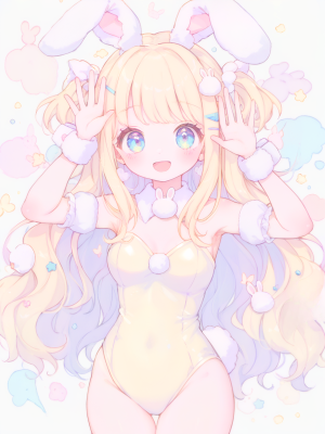 手を挙げてうさみみポーズをするバニーの女の子を作ってみました。