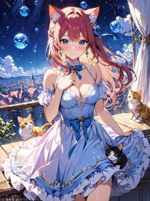 (best quality),(masterpiece),(ultra detailed),1girl, solo, red eyes, pink hair, rabbit ears, long hair, braided bangs, large breasts, maid uniform, apron, frilled skirt, pantyhose, wrist cuffs, crescent shaped earrings, smile,