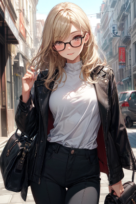 nose blush,full-face blush, red glasses, choker, hoop earrings,bracelet,fingernails,