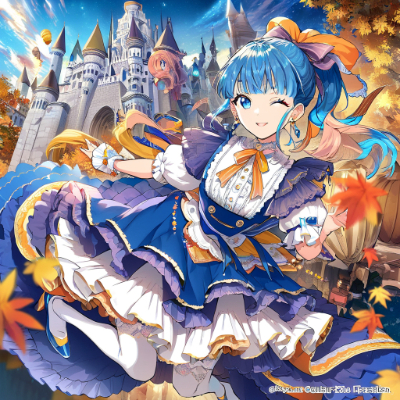 masterpiece,best quality,extremely detailed,anime,girl,princess,gradation color Lolita Fashion,white stockings,pumps,earrings,colorful,makeup,wink,fantasy,blue eyes,inner color hair,dream,puff sleeve,Autumn coordination,ribbon,different world, ,blue hair , <lora:hime_style-1.0r8:1> <lora:hairdetailer:1>,bobcut,wedding