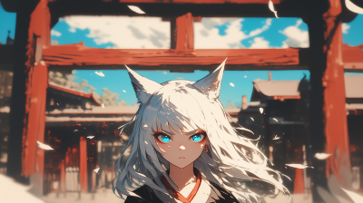 anime, flat colors, crayon drawing, cinematic lighting,severe world , wind blast, burst, killer queen, beautiful cool dark-skinned girl, white japanese miko clothes, silk texture, black undershirt, white hair, fox ears, thick eyebrows, magnificent scene, blur, blur, blur, simple white background, on the huge tropical city,