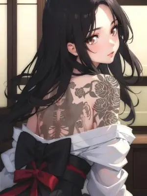 女の子:(Forehead), blond hair, (dark skin), brown eyes, hot springs, ((steam)), bikini, dramatic lighting, dynamic angles, upper body, back shot, 鳥:phoenix, design drawing, no people, white background,