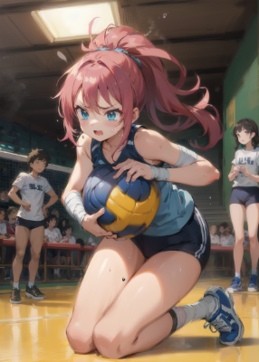 (((masterpiece))), (((best quality))), (((ultra detailed))), (((high-resolution))), ((super fine illustration)), ((Ultimate cutie)),clear looks, improve facial expressions, make facial expressions clear,(((Beautiful spherical shape a blue-yellow volleyball))), (sweat), steam, dynamic angle, dynamic motion,sense of depth, lighting,(dynamic pose),((indoor)),(girls enemies opponent's), motion blur, full body, pink sneakers,BREAK, gym, (bandage), friends,((tired face)), support, team, scattered, hair, messy, uniform, pain, victory, bench, bruised, relief, encouragement, resilience, fierce, competition, strength, exhaustion, comfort, celebration, achievement.