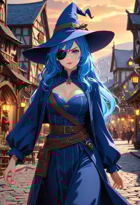 (masterpiece) (best quality) (detailed) (8k) (cinematic) (sharp focus), 1 female fighter, eye patch, nice look, silver hair, witch, moonlight, meteo, extremely fine and beautiful design, extremely fine and beautiful colors, amazing sapraizz, high resolution