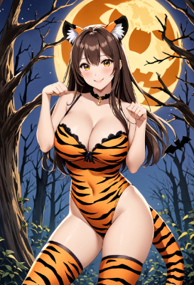 masterpiece, best quality, extremely detailed, anime, 1girl, solo, blonde hair, long hair, black hairband, looking at viewer, open mouth, smile, red eyes, fair skin, huge breasts, covering one eye, yellow jacket, long sleeves, black shirt, black panty, yellow leggings, gold shoes, night, moon,