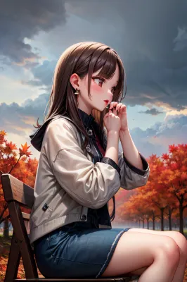 masterpiece, best quality, beautiful, ultra detailed, hyper extreme detailed, anime, 1girl, beautiful older sister, (long wavy hair),detailed face, (orange eyes), (almond eye), (shine glow eyes), (swept bangs), (earrings:1.1), (medium breasts), (bracelet:1.2), (blonde hair), laugh, glad, (dynamic pose), (adult lady:1.3), slender figure, (shoulder pouch), autumn park, (black leather jacket:1.6), (white long sleeve turtleneck sweater:1.4), (black leather skirt:1.5), (black pantyhose), <lora:hyperdetailer_v060.safetensors:1> <lora:eyecolle_isotoma_v100:1>