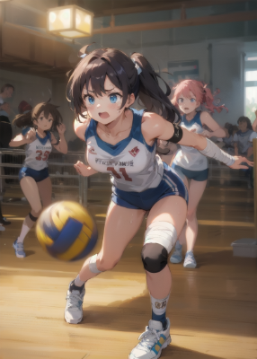 (((masterpiece))), (((best quality))), (((ultra detailed))), (((high-resolution))), ((super fine illustration)), ((Ultimate cutie)),clear looks, improve facial expressions, make facial expressions clear,(((Beautiful spherical shape a blue-yellow volleyball))), (sweat), steam, dynamic angle, dynamic motion,sense of depth, lighting,(dynamic pose), ((indoor)), motion blur, full body,BREAK,(lightweight parka jacket),(thin long-sleeve t-shirt),(dark blue training shorts), (gray running shoes),medium breasts,