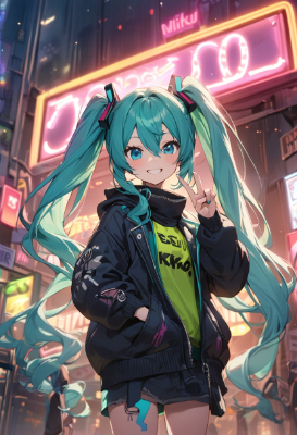 masterpiece, best quality, extremely detailed, anime, girl, skirt,masterpiece, best quality, extremely detailed, anime, girl, skirt,Hatsune Miku, vocaloid, 1girl, twin tails, long hair, blue hair, green hair, blue eyes, headphones, necktie, 1girl, Halloween, festival, ghost, night, moon, 1girl, v-sign, Halloween in the forest where the moonlight of the full moon shines in Hatsune Miku is a witch girl having a party. Colorful mushrooms are growing. pumpkin lantern, cute doll, pastel colors, magic broom, fantasy,twintail,longhair,ribbon,elf,smile,soapbubbles,colorful,jacket,winter,snow