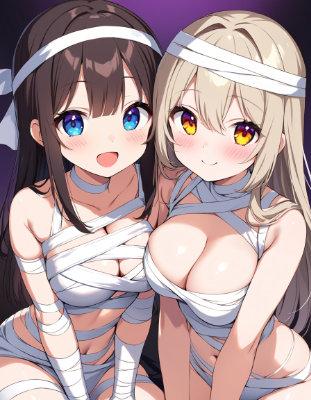 (2girls), (teenager, jk, loli face, tiny pretty breasts:1.2), slender, (detailed body skin, shiny skin:0.8), (mesugaki, triumphant face:1.2), (1fang:0.6), young cheeky girl, highlight in eyes, confident smile,