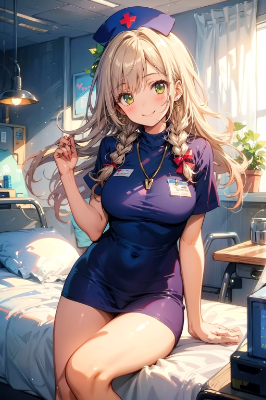 1 girl, long skirt, brown skirt, green blouse, short sleeves, white apron, straw hat, long hair, straight hair, yellow hair, single braid, side braid, green eyes, smile, outdoor, sunflower field, sun, sunlight, blue sky, flowers in a basket,