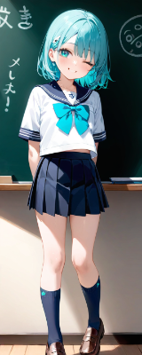 masterpiece, best quality, highres, 1otoko no ko, solo, yellow cardigan, sleeve past wrists, (brown pleated skirt:1.3), loose socks, loafers, school bag, かわいい, flat chest, (aqua hair:1.2), aqua eyes, half updo, smile, 16 yo, nice hands, perfect hands, closed eyes, flying<lora:flat2:0><lora:hairdetailer:0.5><lora:GoodHands-vanilla:1> <lora:superbaggysocks:1>