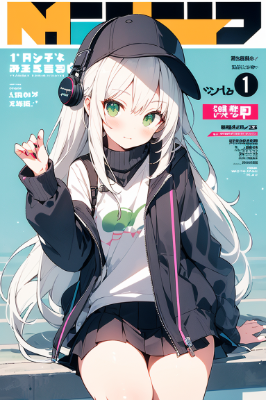 "Draw a beautiful idol posing like a model for a magazine cover, smiling warmly. She is wearing a turtleneck and an MA-1 jacket. Her lustrous long white hair flows elegantly, and her large, pale green eyes are expressive. Depict the character in an illustration style using thin lines for delie detailing. Focus on the upper body from the knees up. The background should feature an urban cityscape, with the character shown from the side.",longhair,mini skirt,green eyes,day,city
