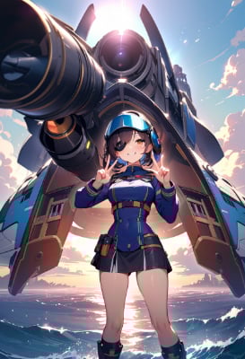 masterpiece, detailed, anime, 8K, UHD, photorealistic, vibrant colors, romantic, battlefield background, dynamic action pose, Gundam, MS-06 Zaku, monoeye, woman pilot, beautiful colors, fine design, dynamic production, amazing surprise, bright-eyed, boss-eyed