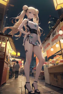 girl, late teenage, posing, selfie, turtleneck sweater, mini-skirt, earrings, necklace, wrist cuffs, high heels, long hair, twintails, twin buns, blonde hair, silver hair, gradient hair, happy laughing, one eye closed, townscape, sidewalk, street trees, light rays, cinematic lighting, professional lighting, stunning face, symmetrical clear eyes, detailed eyes and face, detailed body