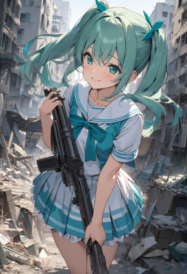 このページは現在開発中です。リニューアル版はすべて開発中のため不具合が起きる可能性があります!一部機能を新しくリリースし直しています!基本的には旧版をそのままご利用ください!旧バージョンへ不具合報告参照生成するいいね16推薦セーラー服と機関銃2024年11月03日 01時35分使用モデル名:animagine-xl-3.0対象年齢:全年齢スタイル:イラスト参加お題:セーラー服#セーラー服#ツインテール#初音ミク#制服#廃墟PromptsNegativePromptsParameterOthermasterpiece, best quality, extremely detailed, anime, girl, skirt, 初音ミク, VOCALOID, blue-green twin tails, sailor uniform, holding a machine gun, smiling, in a ruined cityCopy生成情報戦場の天使マリン