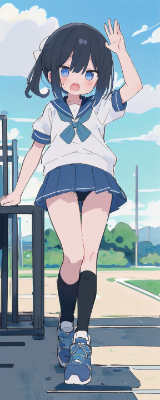 masterpiece, best quality, an anime girl, ((drak blue buruma)), ((gym uniform)), black hair, ponytail, buruma, slender body, white headband, (Wedgie buruma), gym uniform, (one arm up), ((raise one arm straight up)), (stand with both feet together), (stand up straight), brace, (open mouth), dignified face, look upward, (((stand on the podium))), blue sky, sports festival, bay, outdoors, school ground, (insanely detailed), ((many girl in buruma background)), many audience, Player oath, (sharp focus),, <lora:flat2:1> <lora:hairdetailer:1> ,,,,