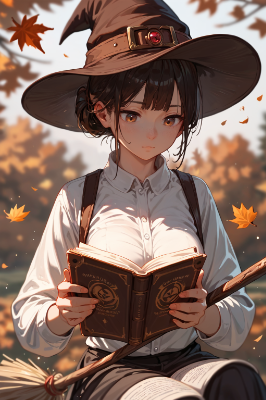score_9,score_8_up,score_7_up,1girl,breast,(reading),(disheveled hair,),(knit cardigan),(holding a book),broom,CLOTHING,broom riding,witch hat,midair,(detailed background),((depth of field)),(photography),<lora:ColorRoughSlider:-0.8>,Autumn,Autumn Landscape,close-up,