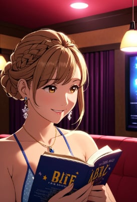masterpiece, best quality,reading book, sad female wearing a blue dress, silently crying on her bed though accepting it, in front of a moonlit window surrounded by books,extremely fine and beautiful design, extremely fine and beautiful colors, amazing sapraizz, cinematiclighting,high resolution, ,inner color hair,witch ,reading book <lora:saturation:1> <lora:make25d_type4_v100:1>
