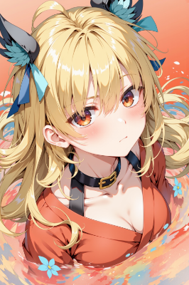 (((Masterpiece, High Quality, close up , 8k, Best Quality, high resolution, line anime,1girl))),detailed background,dynamic pose,dynamic angle,A Japanese anime-style illustration of a brass bust statue of a young girl around 13 years old,depicted in a colorful ink wash style that combines traditional Japanese sumi-e with anime aesthetics. The girl is shown in a classic pantomime pose,with expressive and gentle anime-inspired facial features. The brass material has a soft metallic sheen with hints of vibrant watercolor tones blending into the texture. The background features flowing watercolor and ink wash elements,creating a harmonious and artistic scene that merges traditional Japanese art with modern anime style.,in the high red water,