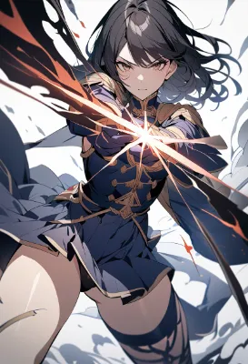 Delicately drawn digital illustrations, highly detailed, (perfect anatomy), (solo), cowboy shot, from front, face forward, (Wear a fantasy military uniform:1.2), white wizard robe, long sleeve, pleated skirt, mini skirt, (Wear waist-length black pantyhose:1.1), Cloak that is white on the outside and red on the inside, extremely detailed face, cool face, dignified face, detailed eyes, glaring, (gray eyes:1.2), sparkling eyes, (short twintails:1.3), (blond hair:1.2), long side hair, delicate hair, elf ear, (white peaked cap), large breasts, slender legs, stretch out a hand, the climax of the great fantasy anime movie, a blue magic circle, Lightning bursting from the magic circle, lightning bolts from hand, lightning effect, blue flash, electrified aura, charged atmosphere, (intricate human hands fingers:1.2), perfect fingers, nice hand, (white gloves:1.2), (Holds a wizard cane in her hand:1.5), last battle, the activation of great power, divine atmosphere, vivid, 8k, HD, dynamic pose, (light and shadow) , <lora:flat2:-0.25> <lora:hairdetailer:1> <lora:hohoaka:-0.4> <lora:eyecolle_lime_v100:1>