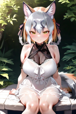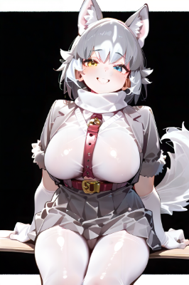 <lora:AIU(Illust)0.2v:0.6> ,1girl, IslandFox_KemoV, island fox \(kemono friends\), fox girl, fox tail, fox ears, animal ear fluff, multicolored hair, grey hair, orange hair,(large breasts:1.3),shiny skin, glistening skin,<lora:UK shiny_skin1v_ILXL:0.7>,