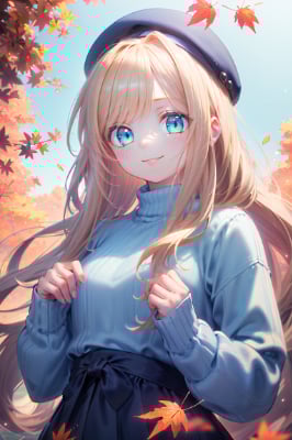 masterpiece, best quality, extremely detailed, anime, landscape painting, a girl, samurai girl, beautiful, smile, black hair, long hair, ponytail, red colored Japanese clothes, red colored kimono, red colored Hakama skirt, long skirt, white tabi socks, Zori sandals, red maple, autumn leaves, mountain with autumn leaves, Manjushaka, a Japanese-style red umbrella, Japanese buddhist temple, blue sky, Japanese style, mysterious, hairdetailer, yawanuri