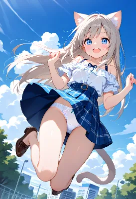 girl,longhair,ponytail,long sleeve,mini skirt,zettai ryouiki,brown hair,blue eyes,ice,sitting,schoolgirl,idol,autumn,day,school rooftop