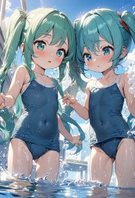 masterpiece, best quality, extremely detailed, anime, girl, skirtmasterpiece, best quality, extremely detailed, anime, girl, skirt, Hatsune Miku, Snow Miku, twin tails in light blue, winter forest with snow falling, blue butterflies flying, snowflakes, whimsical, soap bubbles, rainbow, my child, child, fluffy coat,colored contact lenses,odd eye,odd eyes,blue eyes,green eyes,fairy,fantasy