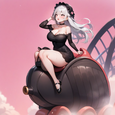 1girl, silver hair, long hair, big tits, (off shoulder:1.2), (lace fabric black bonnet:0.7), (black lace dress:1), (winter clothes:1.2),