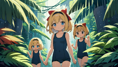 2girls_A_and_B,(hair bow:1.4),red bow,A gril_have_blonde hair_short_hair_hair bow_blue eyes_ flat chest_frced smile_quilted coat,master piece,extremely detailed,highly detailed,B girl_have_small breasts_very long black hair_quilted coat,indoors,sitting,cozy,warm,snow,shiny skin,flat chest,black hair,flat chest,black,