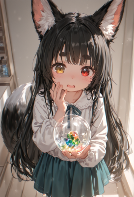 black hair,fox tail,pigtails,grass,