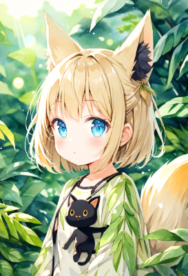 Watercolor, (beautiful detail), (super detail), (detail), (high resolution), (1 girl, 10 years old, loli, cute, solo), upper body, blonde, pixie cut, fox ears, fox tail, beam from eyes,Multiple butterflies, magic butterflies, black glowing butterflies, outdoors, fantasy, night, night sky, trees, meadows, moon, starry sky, wind, shiny hair, shiny skin, shiny clothes, (magic, black magic, magical Light, Cast a Spell, Cast a Spell, Shimmering Aura, Elegant Shine: 1.5),