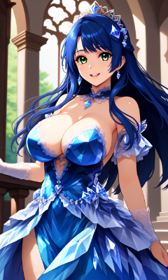 ultra detailed, masterpiece, best quality, aesthetic, perfect lighting, beautiful face, beautiful eyes, cute eyes, shiny hair, 1girl, voluptuous body, large breasts, fiona, light purple hair, long hair, purple eyes, <lora:fiona:0.7>, crystal dress, <lora:crystal-clothes-003:0.6>, alone, inside castle, stairs