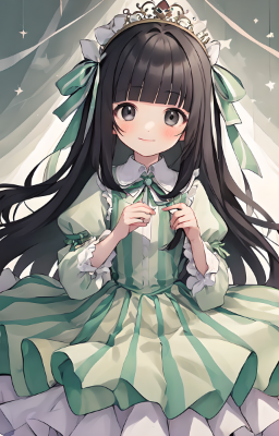 1 girl,(((very longest hair))), Black hair,flowing hair,straight Hair,hair ribbon,mintgreen stripe,Black Eyes,flat chest,straight Across bangs,princess Cut, Very Long Sideburn,roundry Head,Droping eyes,cute,Meekness,Bob Cut,long back hair,12 years old,tiger,animal hood