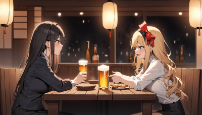 2girls,loli,chibi,(blonde hair:1),(black hair:1),blue eyes,black eyes,(hair bow:1.3),red bow,black headband,smile,indoors,sweets,candies,desserts,pastries,cakes,chocolates,cookies,ice cream,frozen yogurt,doughnuts,pastries,sweet treats,sugar,sugar rush,autumn,livingroom,party,(masterpiece:1.4),(best quality:1.4),very aesthetic,(absurdres:1.3),