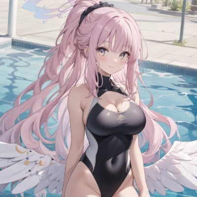 aris,white jacket,white shirt,blue necktie,pleated skirt,halo,smile,small breasts,very long hair,<lora:tendouAliceV1:1>,