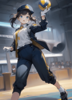 (((masterpiece))), (((best quality))), (((ultra detailed))), (((high-resolution))), ((super fine illustration)), ((Ultimate cutie)),clear looks, improve facial expressions, make facial expressions clear,((((Beautiful spherical shape a blue-yellow volleyball)))), (sweat), steam, dynamic angle, dynamic motion,sense of depth, lighting,(dynamic pose),(indoor), motion blur, full body,BREAK,((((kawashiro nitori)))),(1girl, cute girl, middle breasts), (blue hair, short hair, wavy hair, two side up, blue eyes), green ZUN hat, (light blue shirts),shoes,serious face
