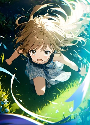 あくびがひとつ、ふたつ。柔らかな毛布にくるまれて、まぶたが少しずつ重たくなっていくのを感じる。こんばんは、私はルナだよ。夜空を見上げるのが大好きな、どこにでもいる普通の女の子。だけど、今日はちょっと特別な夜。ほら、あの窓の向こうを見て。星が流れる夜空が、とっても綺麗でしょう? 私の髪は青と虹色のハイライトがかかったショートヘアで、まるで夜空の一部みたいにキラキラしているんだ。お気に入りのパジャマには月と星が散りばめられていて、袖口には黄色いフリルがついているの。今夜はこのパジャマとふかふかの枕がお供だよ。外は静かな星の海が広がっていて、部屋の中には月明かりがやわらかく差し込んでいる。暖かくて、安心できるこの空間が、私の大好きな場所なんだ。 ベッドに横になっていたら、ふと天井から星がひとつ、ふわりと落ちてきたの。「やあ、ルナ!今夜は一緒に冒険しよう!」星が話しかけてくるなんて、ちょっとびっくりだけど、なんだかワクワクしてきた。名前を聞くと、その星は「ノヴァ」って名乗ったよ。きらきら輝くその小さな体は、触れると温かくて、まるでキャンドルみたいだった。 「さあ、夢列車がやってくる時間だよ!」とノヴァが言うと、部屋の中がふわっと変わって、いつの間にか私は不思議な線路の上に立っていたんだ。夜空の真ん中に続くその線路は、星でできていて、足元で小さな星たちがピカピカ光っている。「夢列車ってなに?」と聞くと、「夢の世界を旅するための特別な列車だよ。きみを素敵な場所へ連れていくんだ」とノヴァがウィンクしてみせた。 遠くから静かな汽笛が聞こえてきたと思ったら、満天の星を背景に、大きな銀色の列車が現れたの。列車は虹色に輝いていて、その光がまるでオーロラみたいにゆっくりと揺れていた。ノヴァが「さあ、乗ろう!」と言うから、私は列車のドアを開けて中に入った。 中はとっても不思議な空間だったよ。椅子もテーブルも、全部が雲でできていて、ふわふわしているんだ。窓の外を見ると、夜空の星が近くに見えて、手を伸ばせば掴めそうなくらいだった。車内には他にも何人かの乗客がいて、みんなリラックスしている様子だったよ。ノヴァは「この列車に乗ると、みんなが心から癒されて、素敵な夢を見られるんだ」と教えてくれた。 列車が静かに走り出すと、車窓の景色がどんどん変わっていった。最初に見えたのは、星の牧場だったよ。小さな星たちが、草原みたいなところで遊んでいて、時々跳ねると空に舞い上がるんだ。その次に見えたのは、月の湖。水面が銀色に輝いていて、湖の中に浮かぶ小舟には、星たちが楽しそうに乗っていたよ。どの景色も夢みたいで、心がぽかぽか温かくなった。 列車の中でノヴァといろんな話をしたよ。ノヴァは夜空の星たちのリーダーみたいな存在で、毎晩誰かのもとに降りていって、その人を元気づけるんだって。「ルナもね、明るい髪と笑顔で、周りを明るくしているんだよ。だから僕は今夜、君の夢に来たんだ」と言われて、ちょっと照れちゃったけど、なんだか嬉しかったな。 列車が静かに減速し始めたころ、ノヴァが「そろそろお別れだよ」と言った。「この旅が終わったら、素敵な夢が君を待っている。だから安心して眠りにつこうね」と優しく微笑んでくれた。 気がつくと、私はまた自分のベッドの上にいた。ノヴァの声がまだ耳元に残っている気がして、私は静かに目を閉じた。部屋の中には月明かりが優しく差し込んでいて、外からは夜空に輝く星のささやきが聞こえるようだった。 「ありがとう、ノヴァ。また夢の中で会おうね。」そんな言葉を心の中でつぶやきながら、私はふかふかの枕に顔を埋め、ゆっくりと眠りについたんだ。 今夜もきっと素敵な夢が見られる。だって、星たちが私を守ってくれているからね。おやすみなさい——また夜空の夢列車で会いましょう。