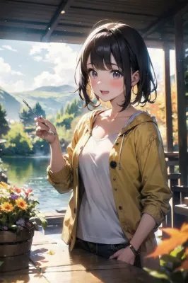 best quality, high resolution, 8k, masterpiece, cute woman, explorer, lake of silence, Loch Ness, Loch Ness monster, a lake in the Scottish highlands, went exploring in Scotland, fun summer memories, Scotland, cat, cute, autumn, perspective, mist,静寂の湖, winter, cinematic lighting, high quality design