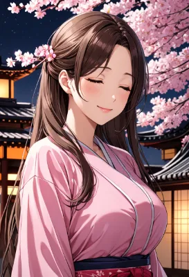 masterpiece, best quality, extremely detailed, anime, sakata gintoki, 1adult male, male focus, solo, male face, male eyes, adam’s apple, larynx, sharp nose, facial muscle, long sleeves, coat, muffler, suit, glasses, smile, closed mouth, starry sky, night,夜桜, お猪口, 日本酒, look up