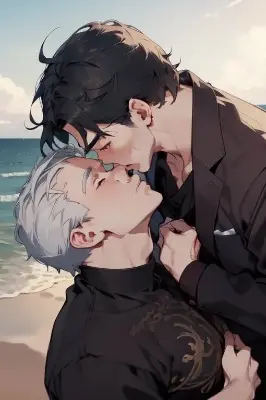 (delicate composition:1.5),(Masterpiece), best quality face, ((super-detailed)), (very fine 4K super fine), (ultra-detailed body), (gay male kissing),sleeping, smileing, romantic_style, scenery, organic, dynamic angle,(beside park:0.8),(2 male:1.8), (handsum male), (black hair) ,short hair, blue eyes,sharply eyes, larynx, thick eyebrows/(male 1/), mature male, (dark brown hair),short hair, parted bangs, male face ,smile , larynx/(male 2/), harf sleeves jacket,summer sky
