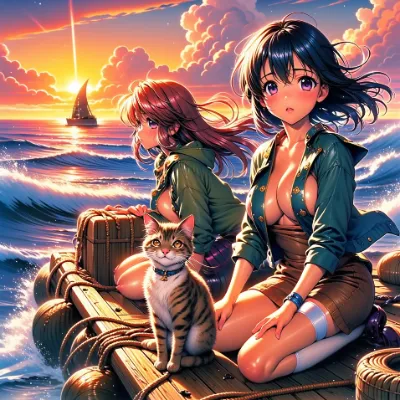 masterpiece, best quality, very aesthetic, highres, ultra-detailed, (((Meteor shower))), An anime-style illustration of a fox girl sitting by a tranquil stream under the starry night sky. The girl has red hair, fox ears, and a tail, dressed in a traditional Japanese shrine maiden outfit with a playful expression. Her feet rest in the clear water of the stream, surrounded by autumn leaves and a peaceful rural setting. The background features a traditional Japanese house with glowing lanterns, a full moon illuminating the scene, and vibrant red maple trees framing the image. The atmosphere combines serenity and charm, with a touch of mysticism, HUGE BREASTS, SAGGING BREASTS,large breasts, beautiful breasts,white thighhighs,hand,light,photo background,The girl I like the most