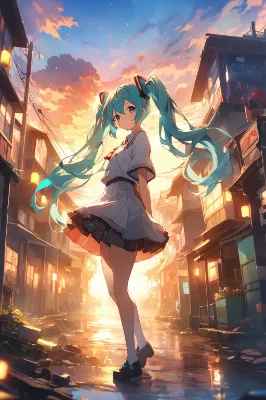 雨の中のミク
