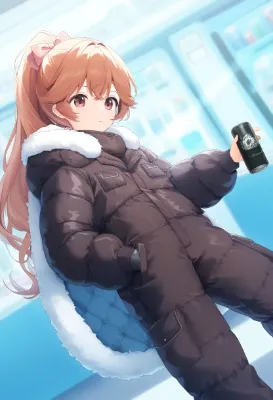 {{{{{down jacket, snowsuit, long stitched padded puffy pants, big long fluffy fur-trimmed cape}}}}}, {{{heavy clothes, fur-trimmed sleeves, fur-trimmed cuffs, fur-trimmed hood, oversized clothes, shiny clothes}}}, [[[latex]]], cute girl, solo, sneakers, contrapposto, [[[[[[[[[[gochuumon wa usagi desu ka?]]]]]]]]]], mittens, {{{{{outdoors, motion blur, hanafuda, card, floating card, floating hair, holding card, fighting stance, smirk}}}}}, black hair, orange eyes, purple jacket, purple pants, {{{long hair}}}, hair between eyes, ahoge, spiked hair, shaggy cut, , best quality, amazing quality, very aesthetic, absurdres