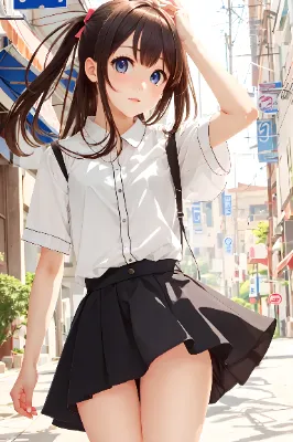 masterpiece, best quality, extremely detailed, anime, girl, skirt, infinite shallow water surface, countless swords piercing the water-covered land, vast clear blue sky with the sunset in the distance, white flowing clouds, reflections on the water surface, transparent earth beneath the water, infinite flat land with numerous swords sticking out, deserted with no people, serene landscape