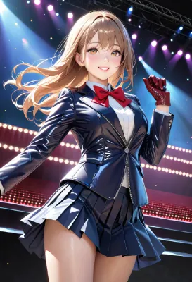 (photorealistic:1.4), (RAW photo), masterpiece, best quality, extremely detailed, lady, neat and clean, polite, shiny down jacket, high neck, charcoal gray pleated mini skirt, black long boots, long hair, almond shaped eyes, staring, standing, in the room, university, night