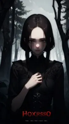 (((horror))) (movie poster style), (forehead), blonde hair, dress, brown eyes, very overcast weather, cinematic lighting, dark mansion,