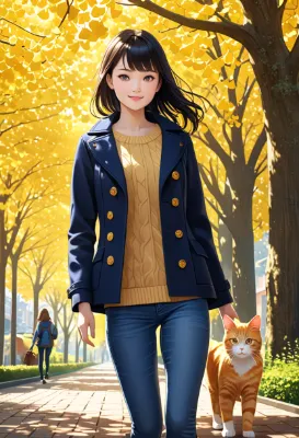 Wandering Through the Forest, Sunlight Filtering Through the Trees, Rim Light, Inner Color Hair, Best Illustration, Best Quality, Colorful Witch Around Who Picked a Large Basket Weeks Various Kinds of Herbs, Yong Witch, Beige Dress, Blue Cloak, Dark Brown Long Boots, Green Eyes, Smile, Bluestone Pendant, Night, Mist, Fog, (Buddy Black Cat), Forest, Extremely Fine and beautiful colors, 8k, amazing surprise, dynamic production, cinematic lighting, sunlight filtering through the trees,